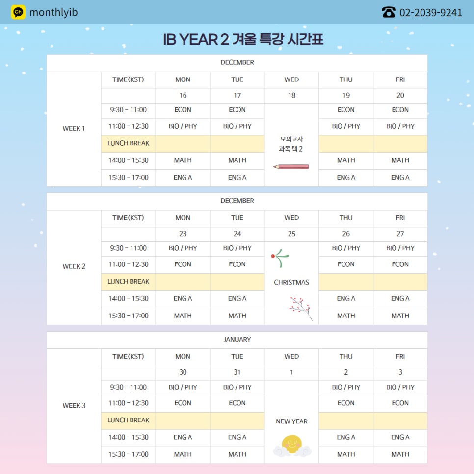 📅12/16~1/3 3주 (12/25,1/1 휴강)